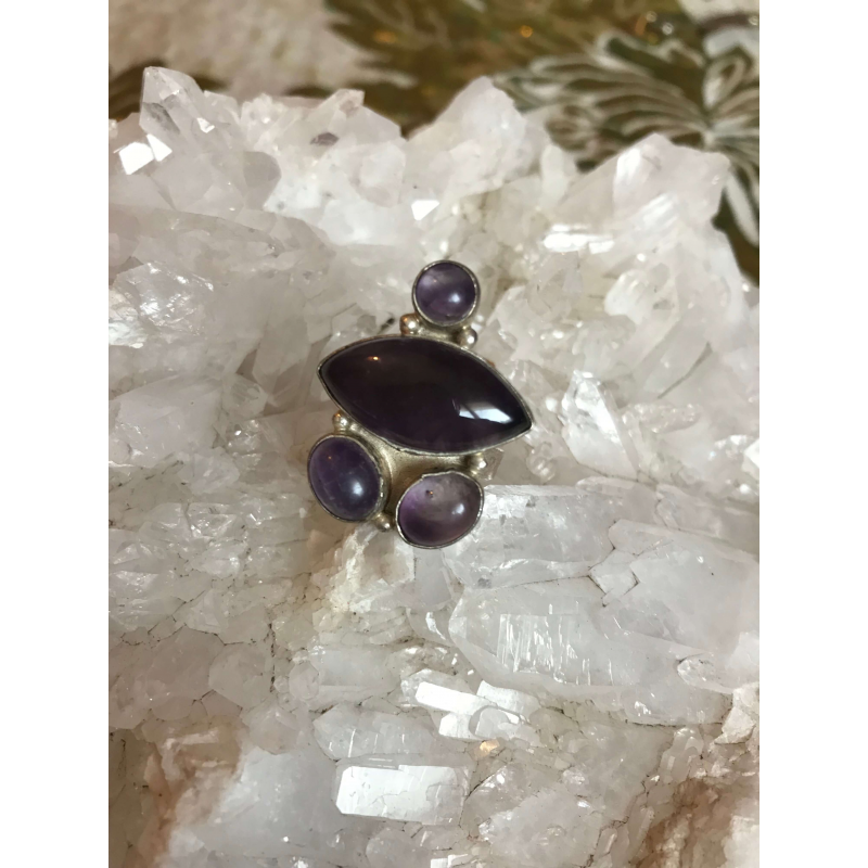 Anillos de plata de la India con Piedras Minerales - Amatista