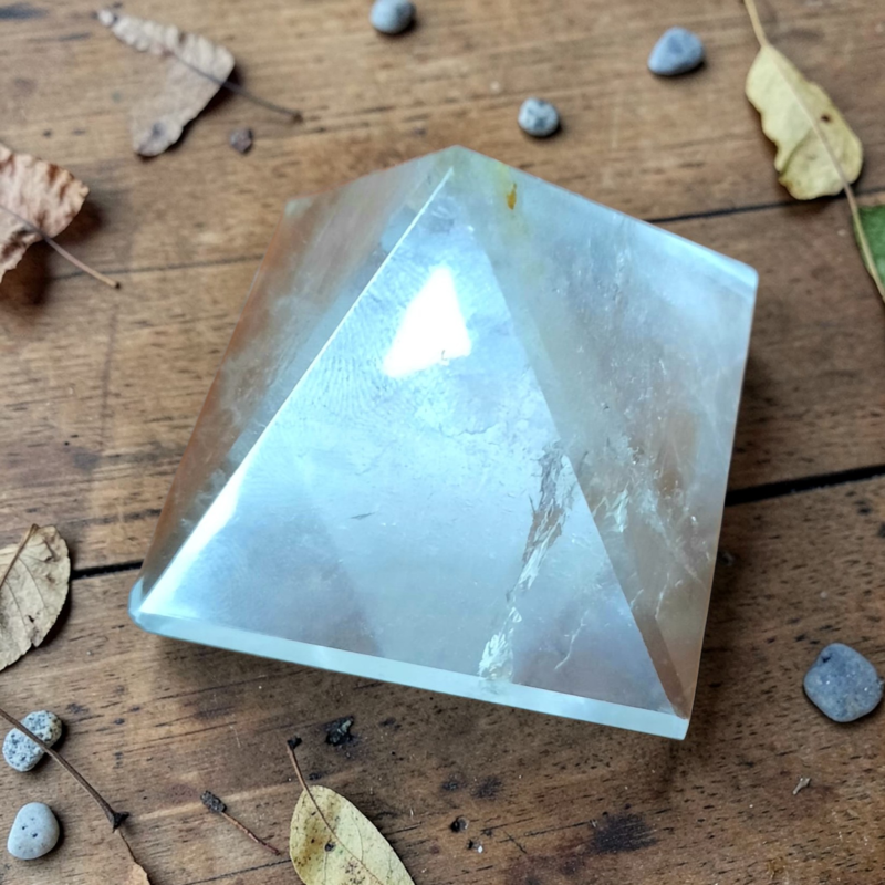 PIRÁMIDE DE CUARZO BLANCO DE ALTA CALIDAD EN TAMAÑO GRANDE. ESPECIAL PARA EL CHAKRA CORAZÓN Y EL PLEXO SOLAR.