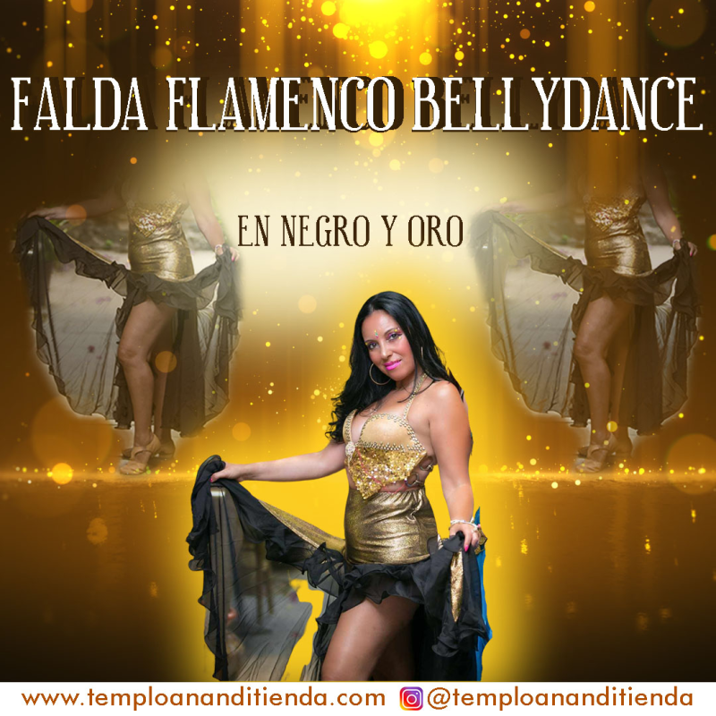 FALDA FLAMENCO BELLYDANCE EN TONOS NEGRO Y ORO